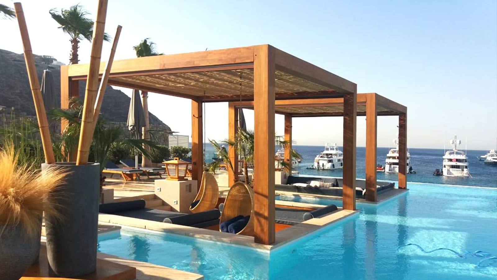 Χρησιμοποιούμε ξυλεία υψηλής ποιότητας όπως Teak, γνωστό για τη μεγάλη του ανθεκτικότητα στον χρόνο και τις καιρικές συνθήκες. Κέδρος επιλέγεται για τις φυσικές του ιδιότητες κατά της υγρασίας, ενώ το Πεύκο αποτελεί μια οικονομικότερη επιλογή με σωστή επεξεργασία και προστασία.
